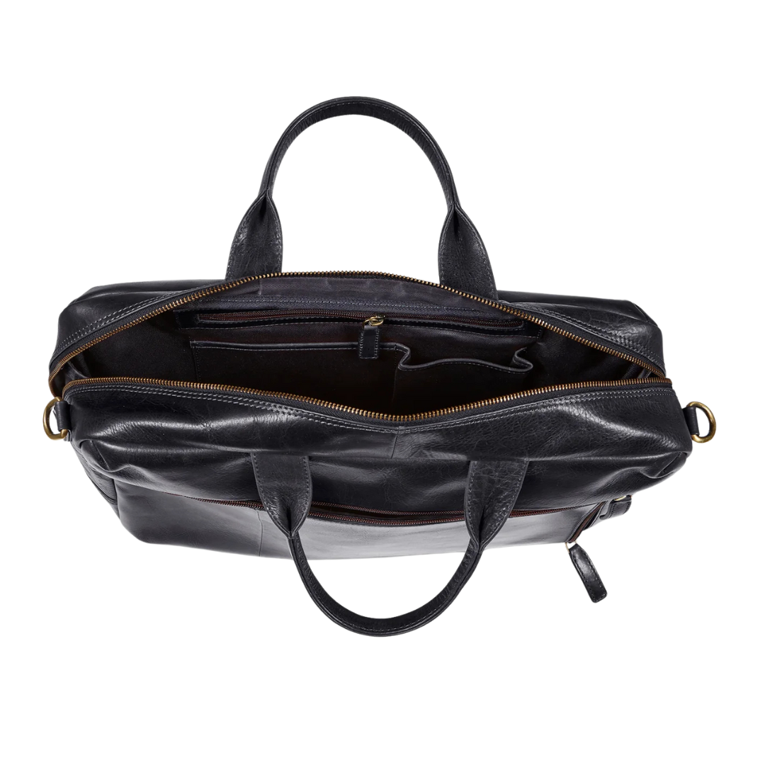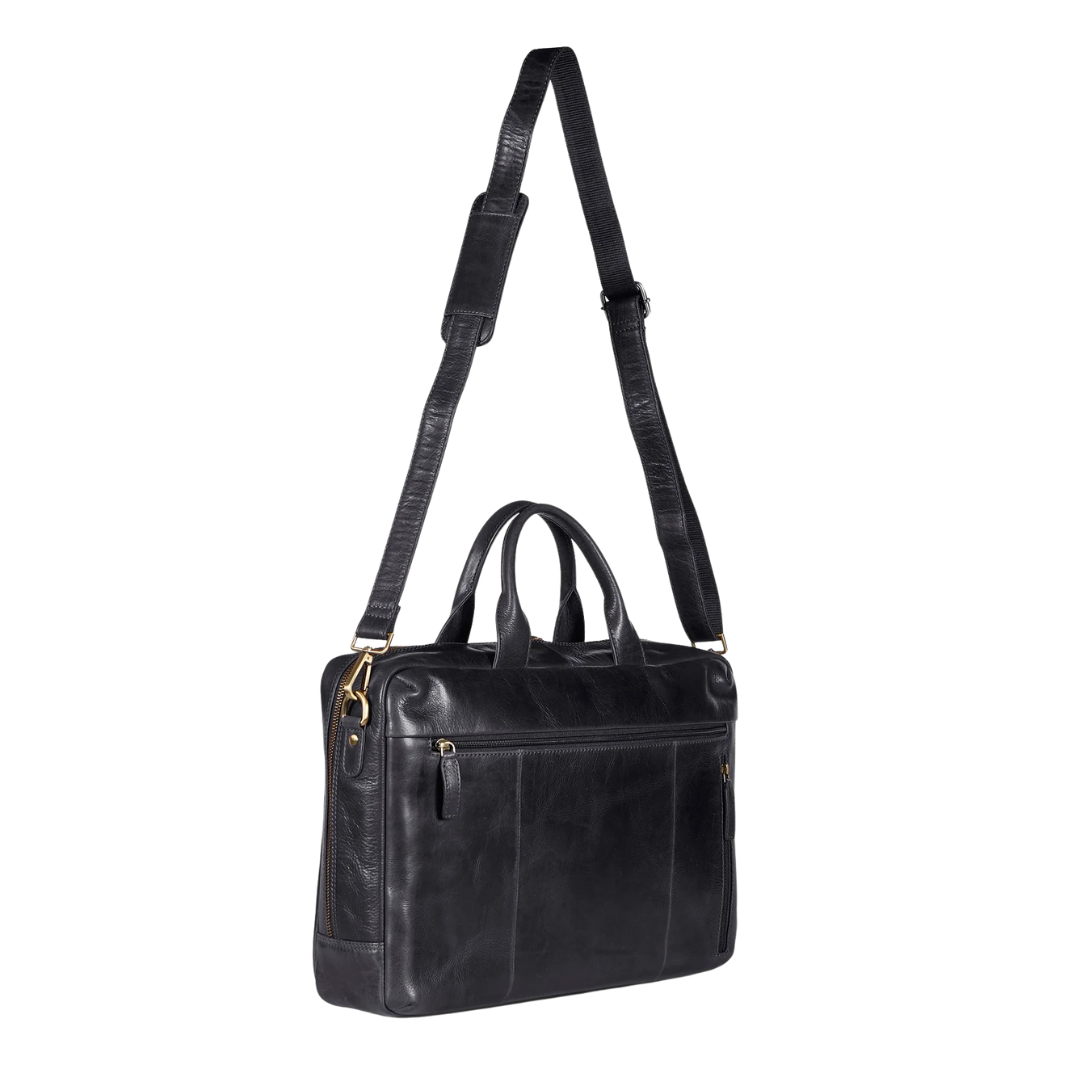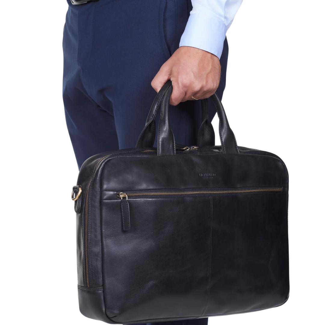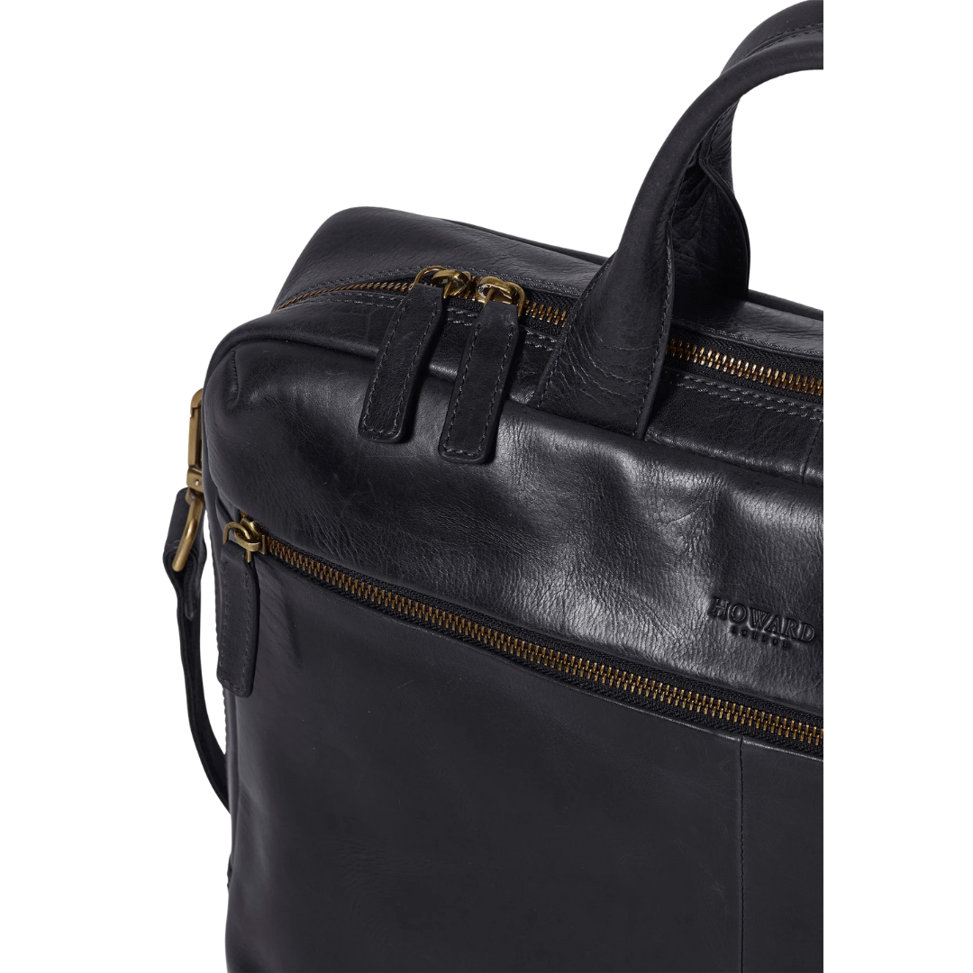 Howard London fartölvutaska með svörtu leðri.