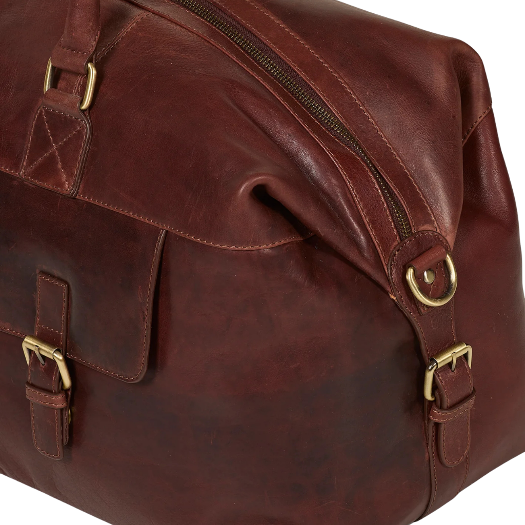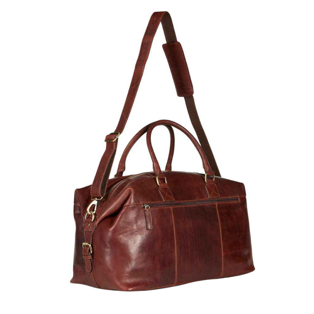 Þessi leðurhelgartaska fær fallega, náttúrulega áferð með daglegri notkun.